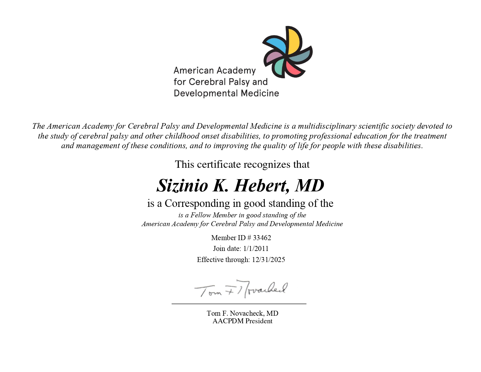 - Membro da American Academy for Cerebral Palsy and Developmental Medicine (AACPDM);
